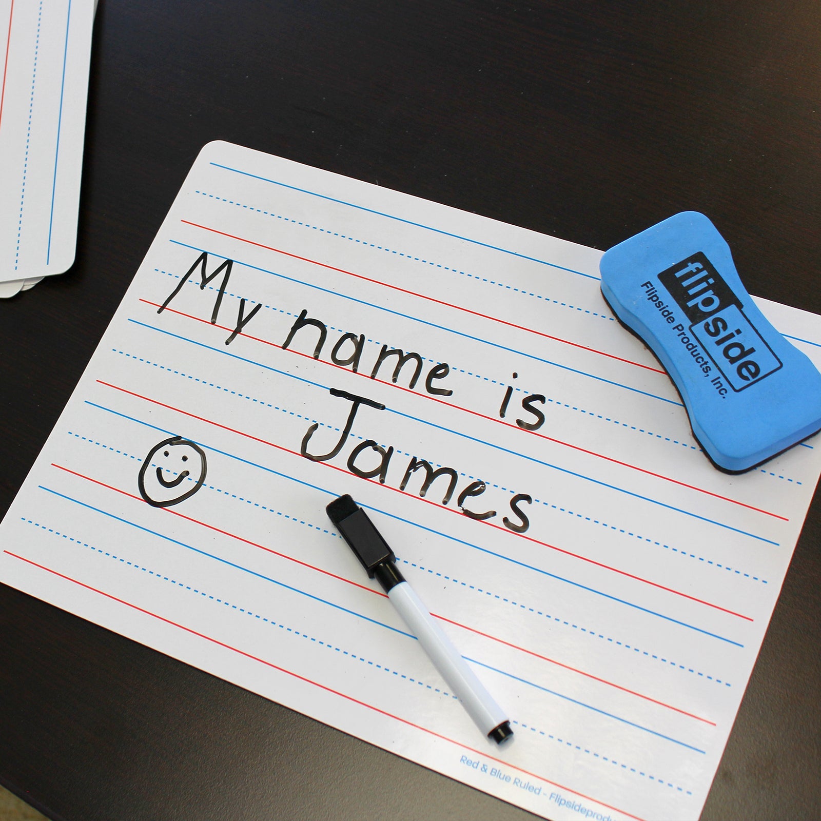 Magnetic Dry Erase Learning Mat, Two-Sided Red & Blue Ruled-Plain, 9" x 12", Pack of 48