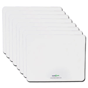 Blank replacement sheets for rectangular dry erase boards with a 9.5" x 7.5" writing surface. Simply peel off adhesive backing and sick over the old surface. Clean with soap and water or microfiber cleaning cloth. Sold as a pack of 8 sheets.