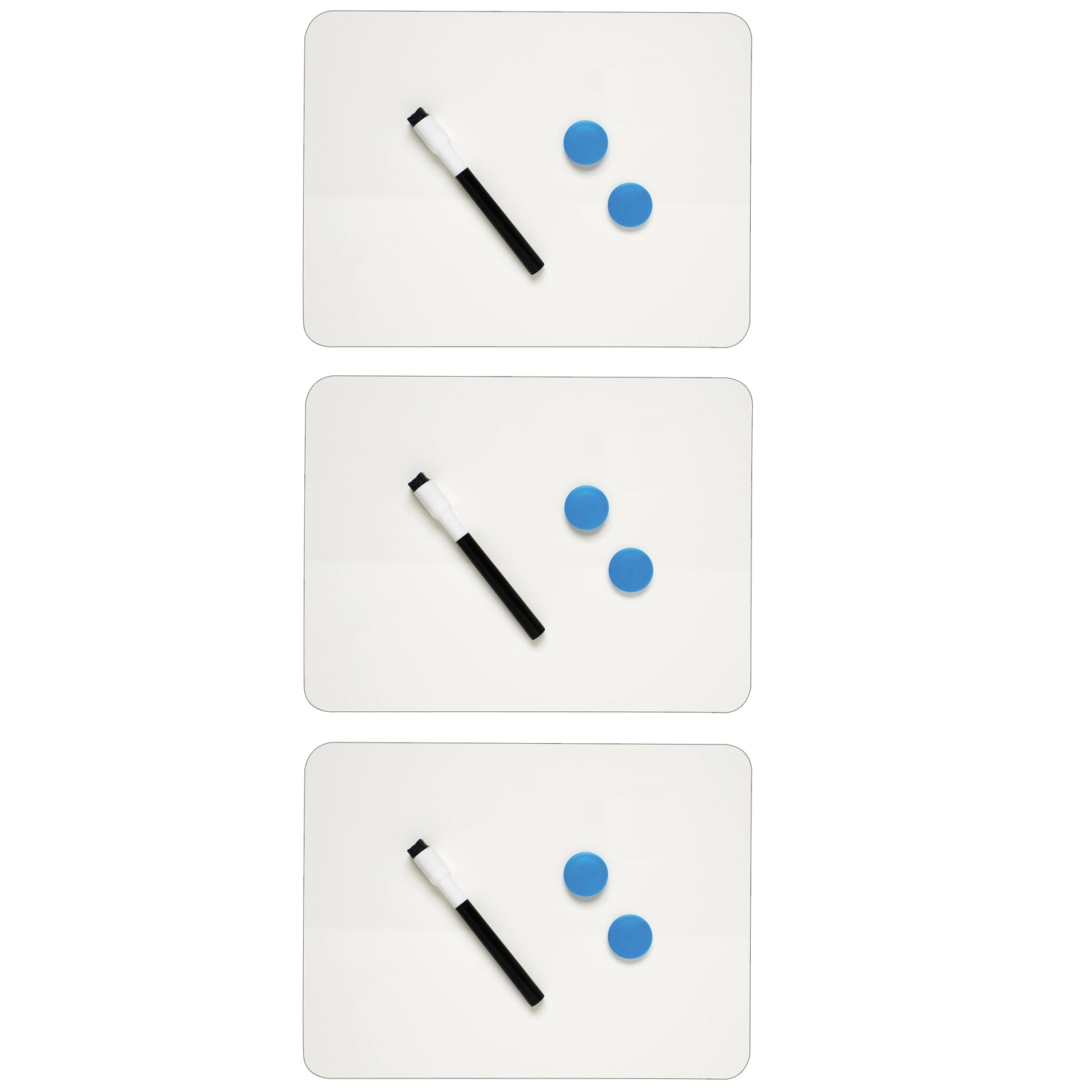Magnetic Dry-Erase Board with Dry-Erase Marker & Two Magnets, 11.5" x 11.5", 3 Sets