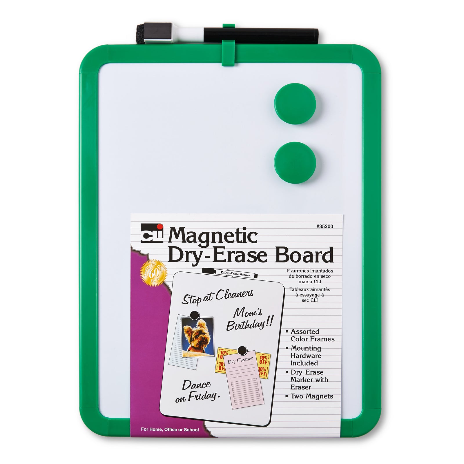 Framed Magnetic Dry Erase Board with Marker & Magnets, Assorted Colors, 8.5" x 11", Pack of 4