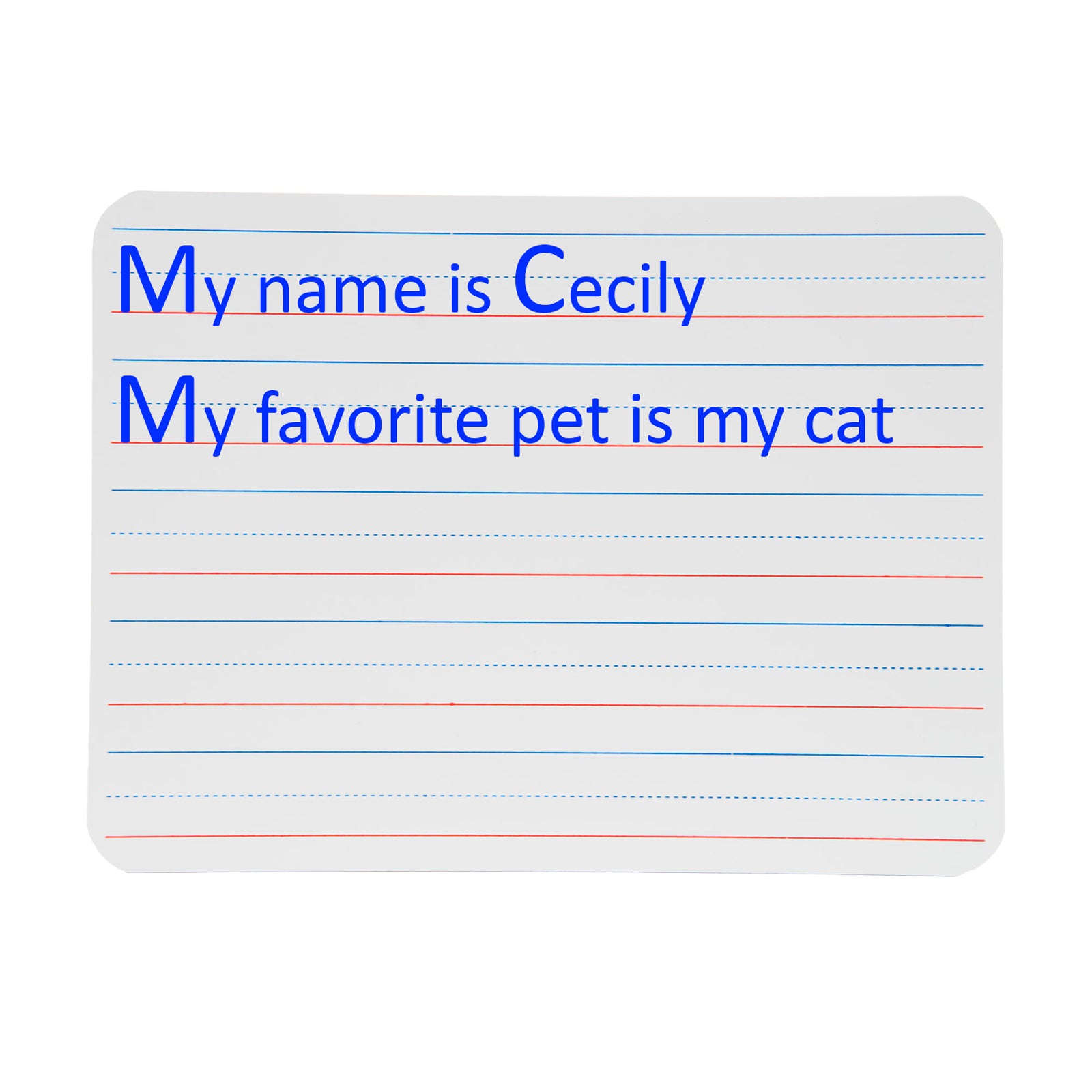 Handwriting Whiteboard Dry Erase Set, 2-Sided, Ruled-Plain, with Marker-Eraser, 9" x 12"