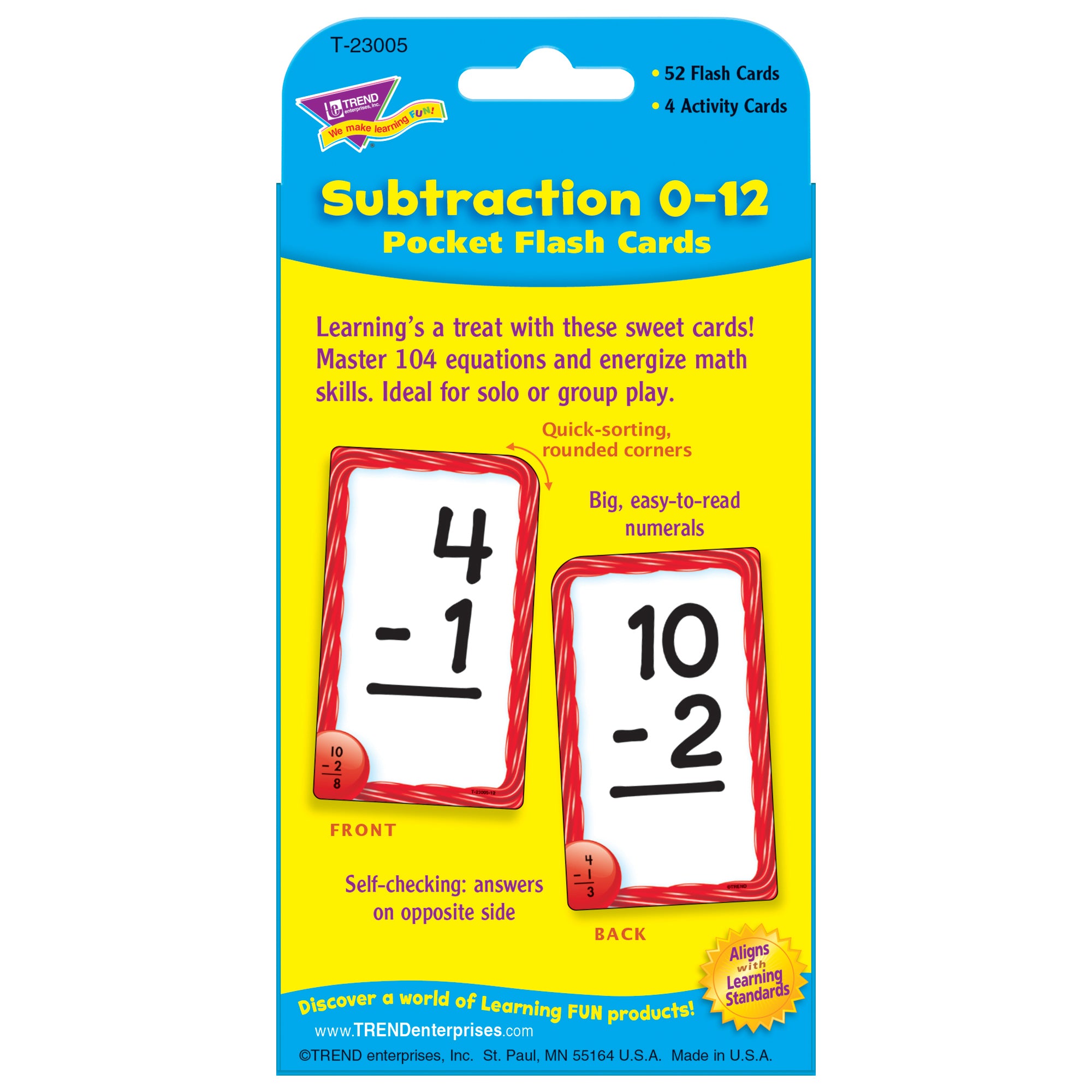 Flashy by design! Build student confidence and skills using fun-filled flash cards. These cards, complete with activities, reinforce subtraction facts through 12. Watch students enjoy learning and build skills on their own or with their friends... at school, home, or on the go! Durable, no-see-through cards. Quick sorting, rounded corners. Self-checking, answers on card backs. 56 two-sided cards, 3.125" x 5.25". For ages 6-7.