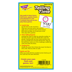 Content-rich time cards do their job, teaching students new skills in a fun way. This educational aid helps students tell time using analog clocks, numbers, and words. Self-checking, answers on back. Sturdy cards and storage box. Students will delight in mastering new skills. No-see-through cards with quick-sorting, rounded corners. Includes 96 cards, 3" x 6". For ages 6 and up.